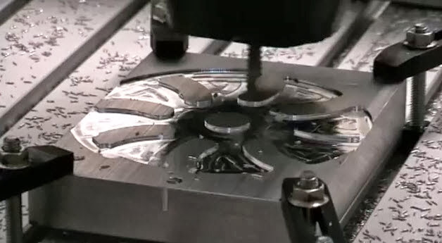 แสดงการกัดแผ่นอลูมิเนียมด้วยเครื่องCNCมิลลิ่งให้เป็นคลีบพัดลมในเครื่องจักร